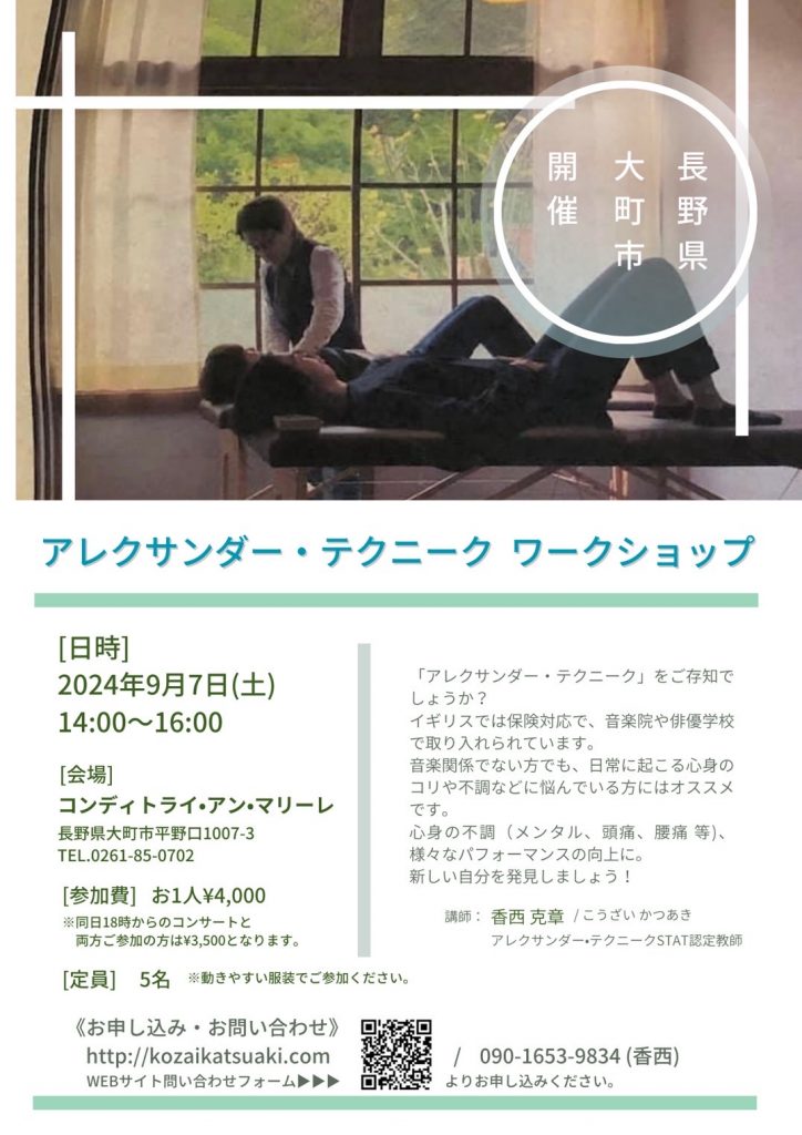 長野県大町市で、アレクサンダー・テクニーク ワークショップを開催致します。体験レッスンとして、どうぞこの機会にご参加ください。