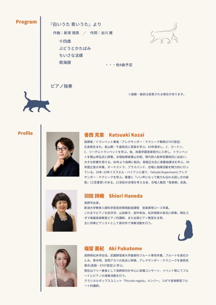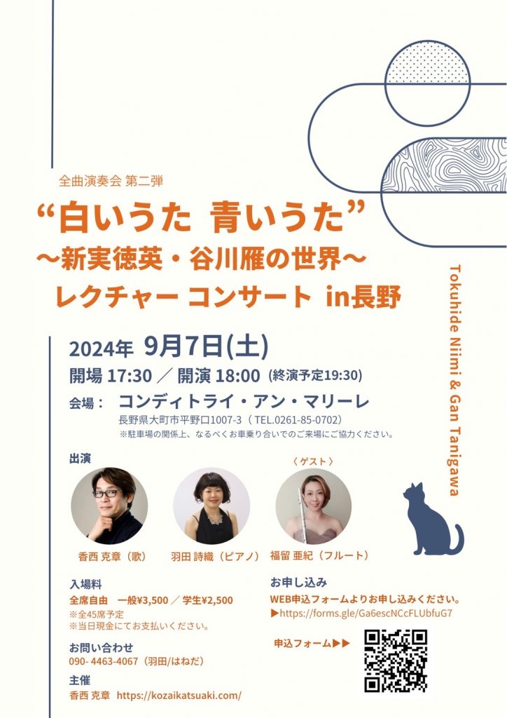 “白いうた青いうた”レクチャーコンサート第二弾!を長野県大町市で開催致します。
