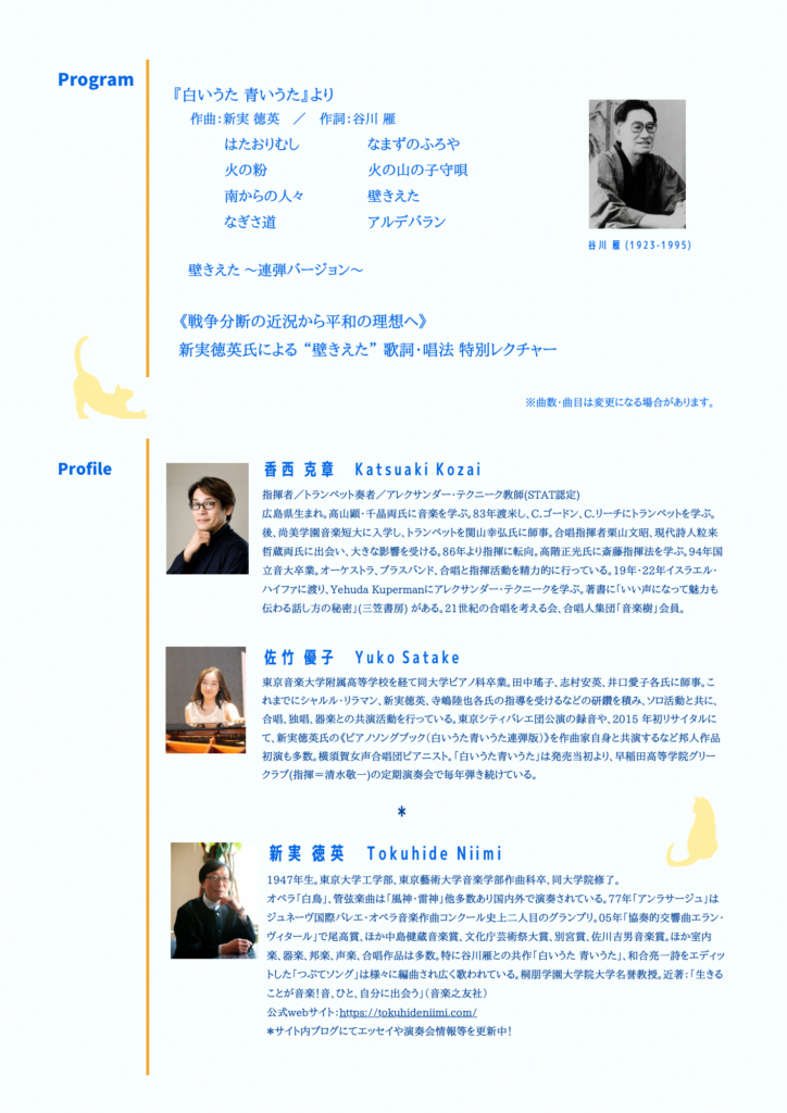 出演:香西克章(歌)、佐竹優子(ピアノ)、スペシャルゲスト 新実徳英(作曲家)