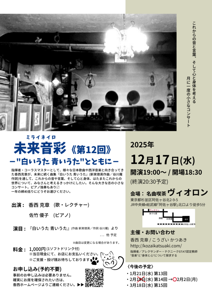 阿佐ヶ谷の名曲喫茶ヴィオロンでの月1ライブ!2025年を締め括る第12回、どうぞお運びください。